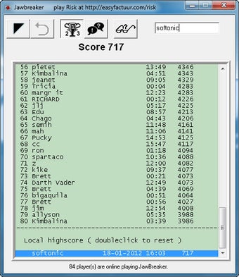 Jawbreaker erweckt eine ursprünglich für PocketPCs entwickelte Spielidee auf modernen Windows-PCs zum Leben. Der Spieler muss das mit bunten Bällen gefüllte Spielfeld möglichst komplett abräumen: Sobald zwei oder mehr Kugeln derselben Farbe neben- oder übereinander liegen, verschwinden diese per Doppelklick. Je mehr Kugeln in einem Zug verschwinden, desto mehr Punkte heimst man ein. In frei werdende Reihen und Spalten rücken die jeweils benachbarten Kugeln nach. So leert sich das Spielfeld Stück für Stück.